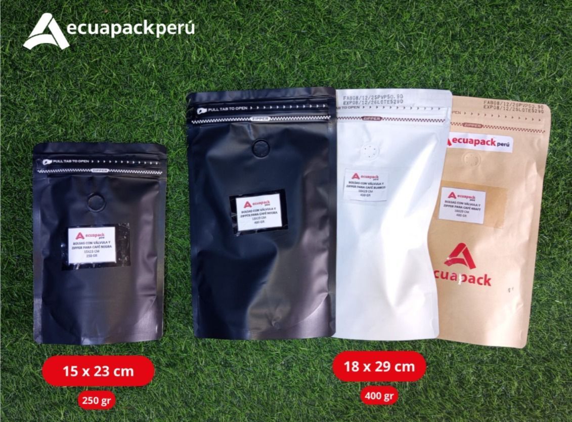 Las bolsas para café con zipper y válvula desgasificadora son envases flexibles diseñados especialmente para conservar café tostado en grano o molido, manteniendo su frescura, aroma y calidad por mayor tiempo. Kraft - Negro y Blanco.