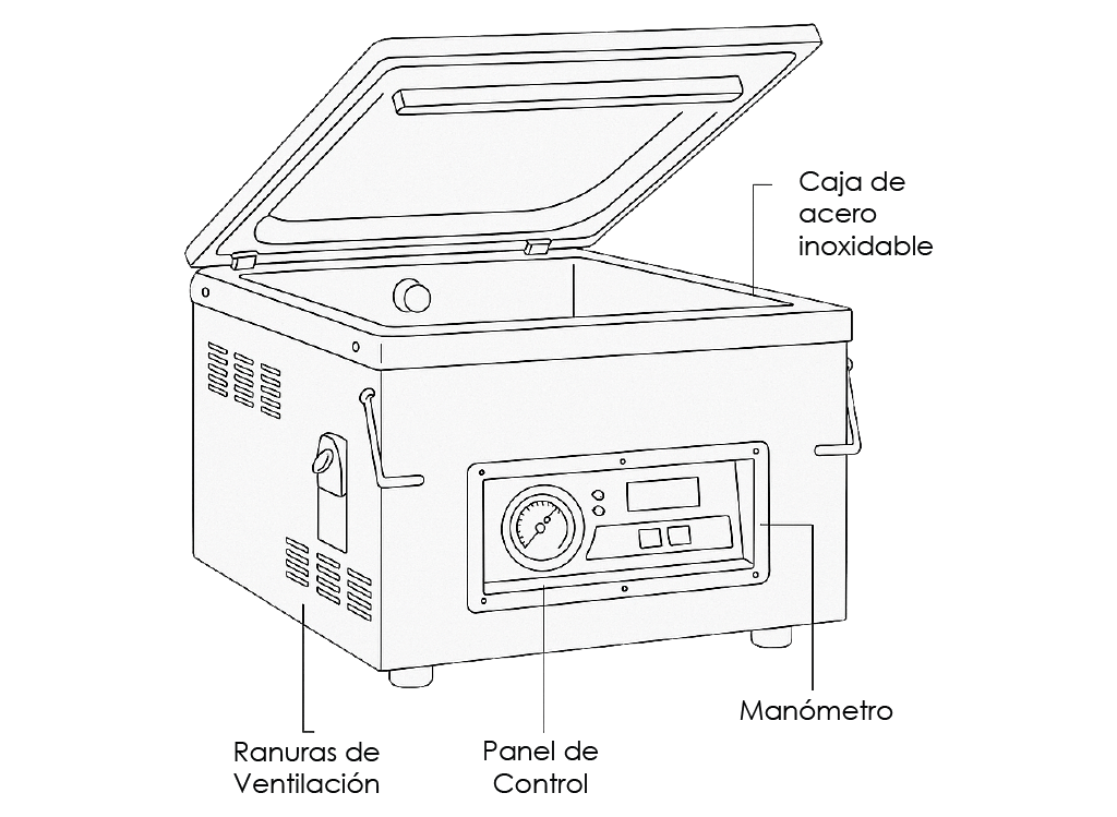 Su barra de sellado permite trabajar con empaques de mayor tamaño, garantizando eficiencia, durabilidad y fácil limpieza.