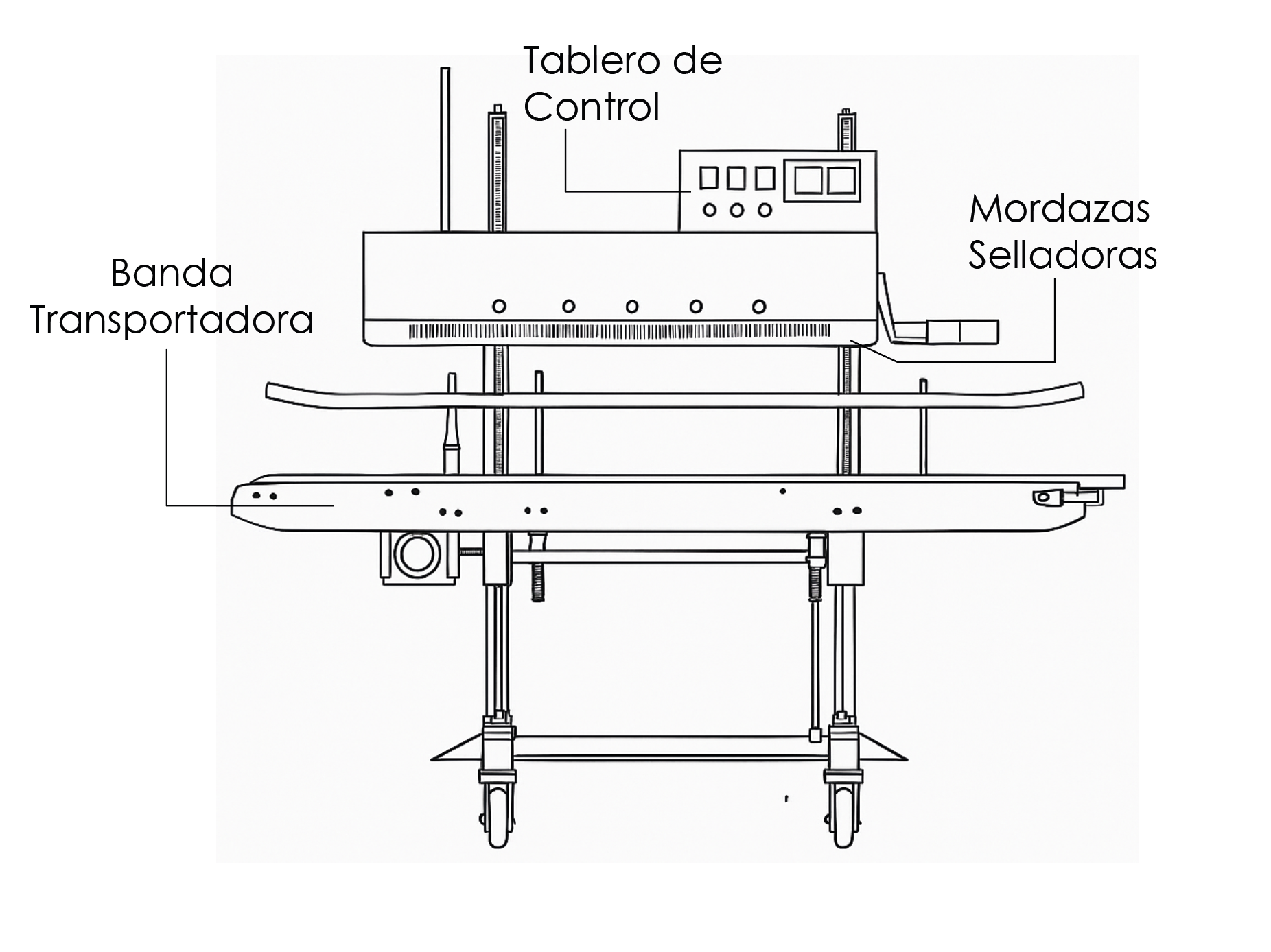 La selladora continua de trabajo pesado es un equipo industrial robusto, ideal para sellar bolsas de gran tamaño y peso de forma continua y eficiente. Cuenta con control de temperatura y velocidad ajustable,