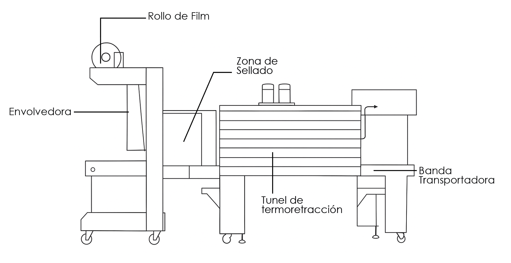 semiautomática diseñada para empaques eficientes y profesionales en sectores industriales. Utiliza un sistema de empuje neumático para alimentar los productos, realiza cortes precisos sin que la película se adhiera al cortador y los dirige al túnel de retracción, donde el calor ajusta la película al producto.